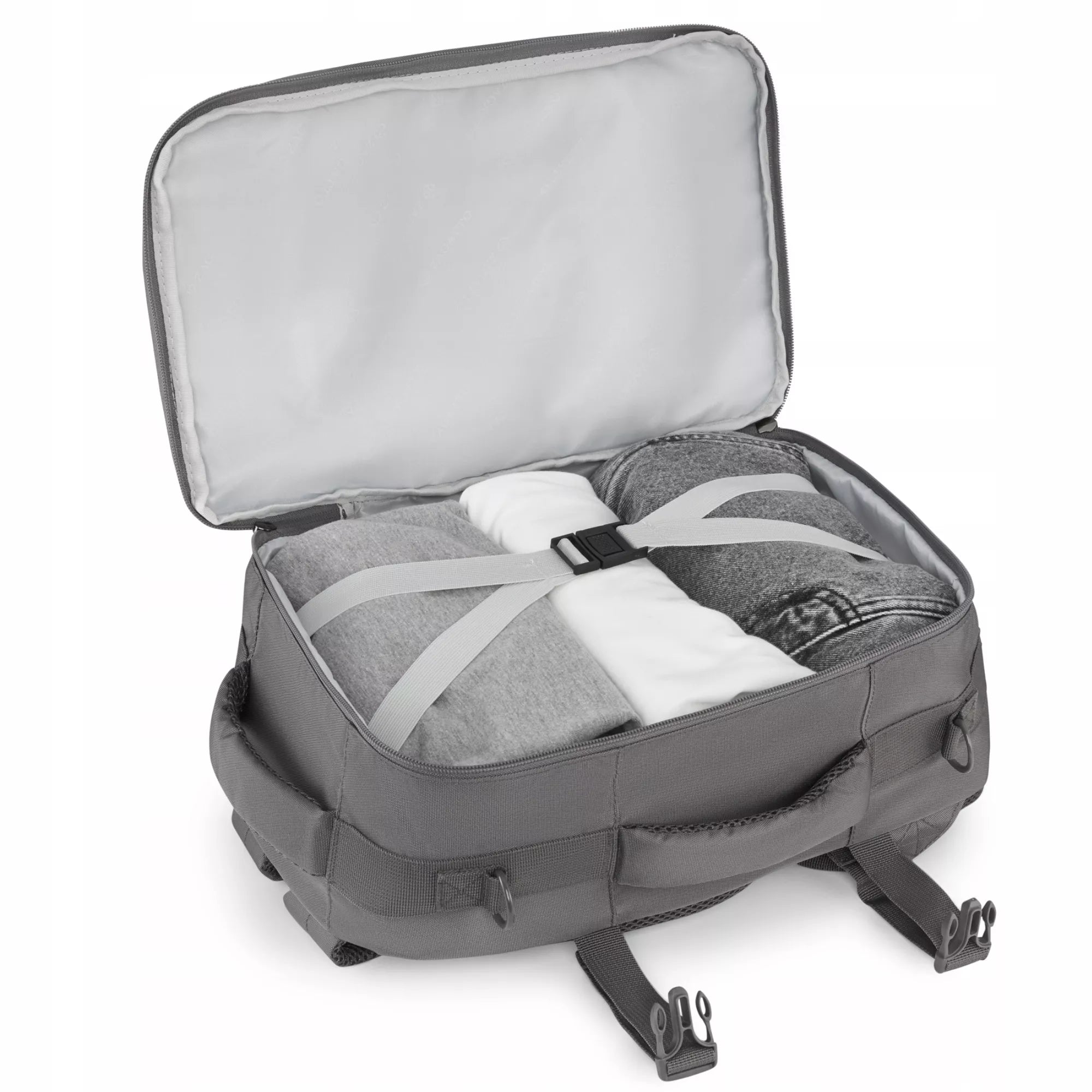 Ši kuprinė pasižymi 40x25x20 cm matmenimis, todėl puikiai atitinka populiarių oro linijų, tokių kaip Ryanair ar Wizz Air, nemokamo rankinio bagažo reikalavimus. Pagrindinis skyrius atsidaro tarsi lagaminas, užtikrinantis patogią daiktų prieigą, o specialiai įrengta saugi vieta nešiojamam kompiuteriui leidžia patogiai dirbti kelionės metu. Be to, paslėpta apsaugos nuo vagysčių kišenėlė nugarinėje dalyje užtikrina svarbiausių dokumentų saugumą.