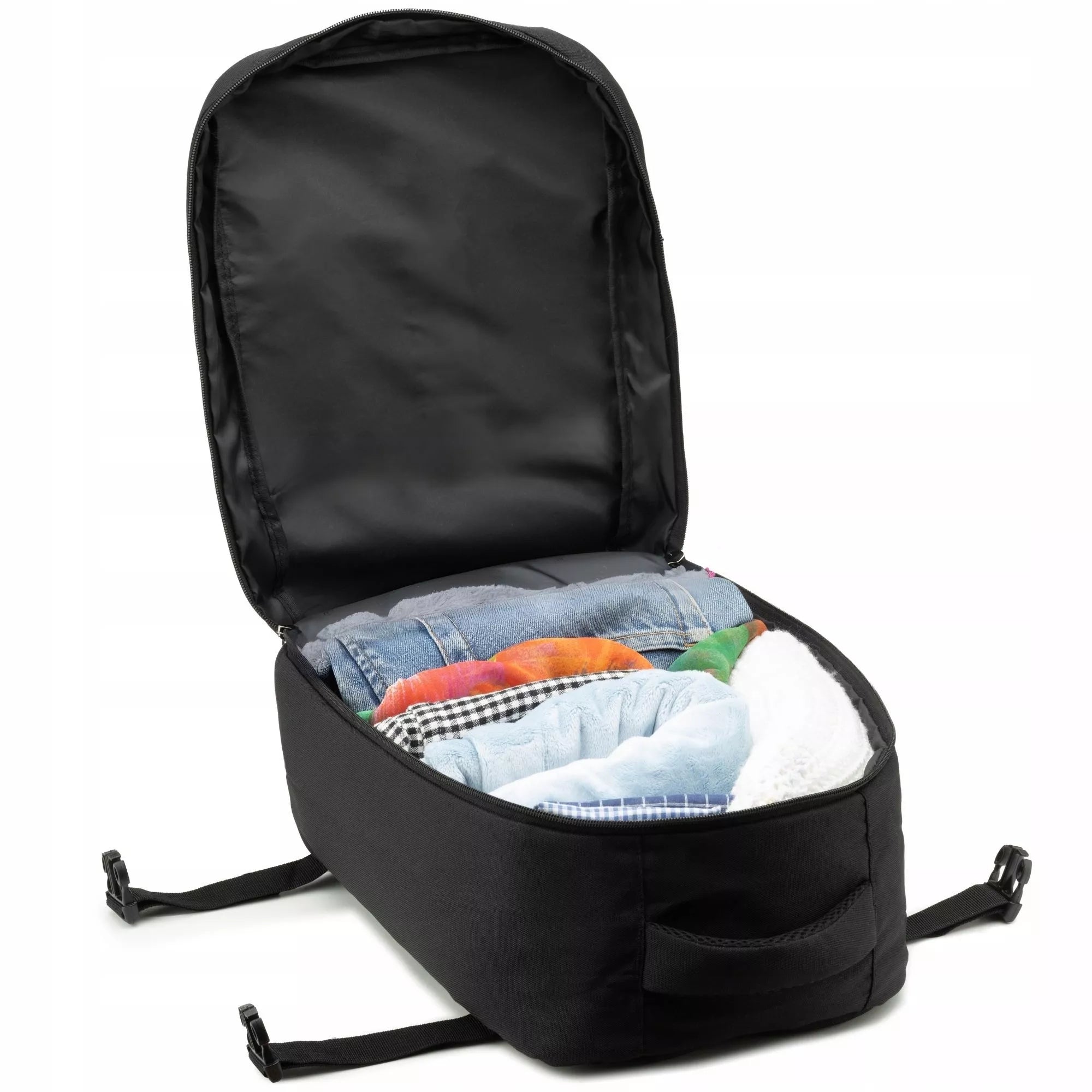 - Privalumai: puiki atitiktis oro linijų matmenų reikalavimams, atsparumas vandeniui, patogus atidarymas kaip lagamino, integruotas tvirtinimas prie lagamino rankenos, lengvas svoris.