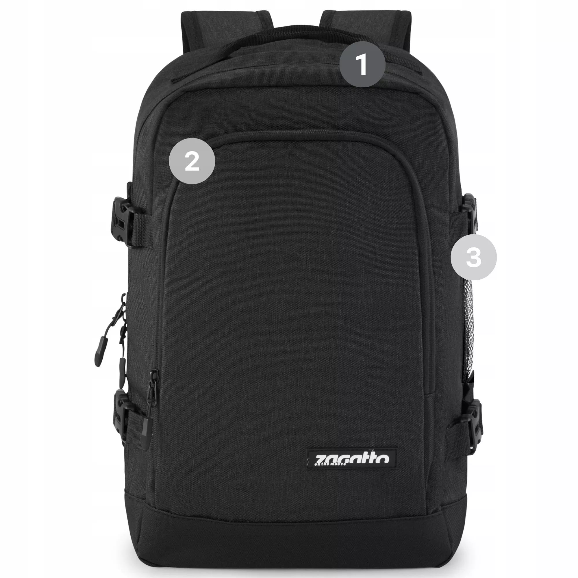 Moderni „Zagatto®“ kuprinė pasižymi itin praktišku dizainu – ji atsidaro kaip lagaminas, todėl greitai ir lengvai susidėsite visus reikalingus daiktus. Viduje rasite specialų skyrių nešiojamam kompiuteriui, o papildomos kišenės leis tvarkingai susidėti dokumentus, bilietus bei kitus smulkius daiktus. Ergonomiškos, vėdinamos petnešos ir nugaros dalis užtikrina maksimalų komfortą net ilgų kelionių metu, o galimybė pritvirtinti kuprinę prie lagamino rankenos palengvina judėjimą oro uoste.