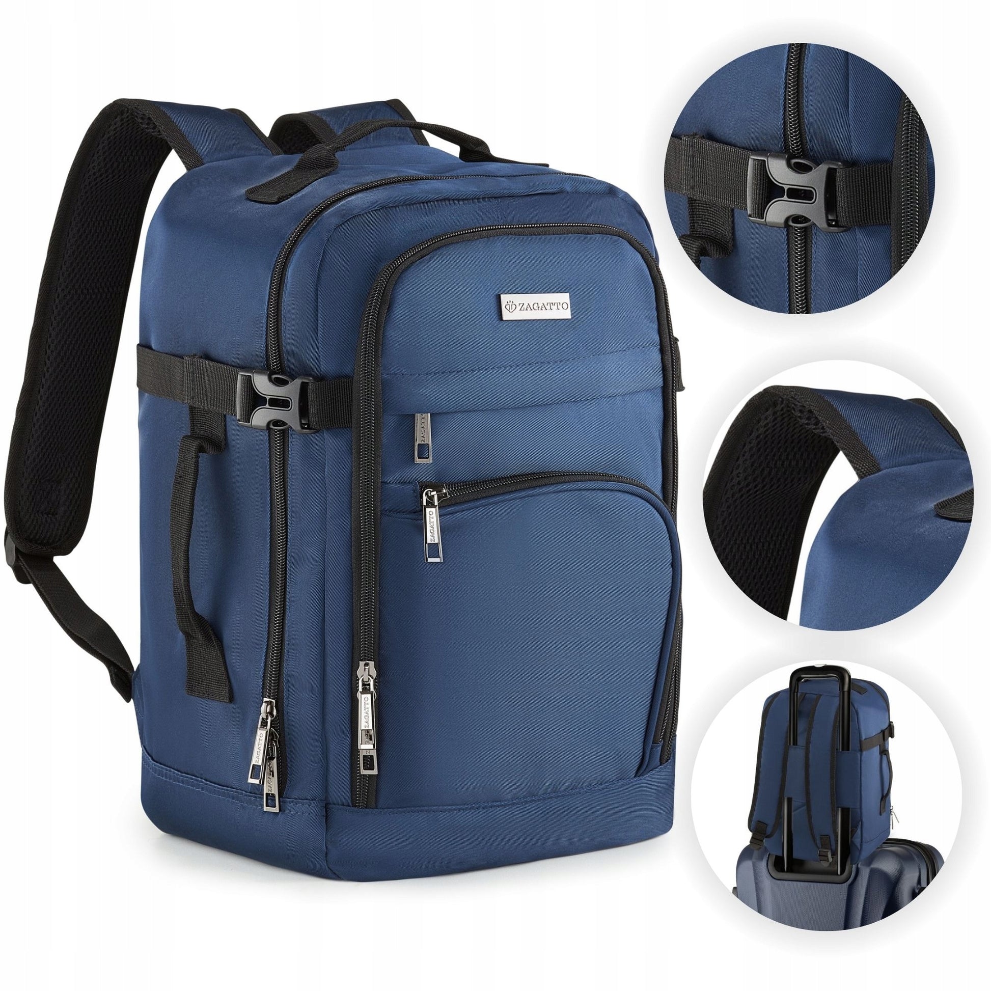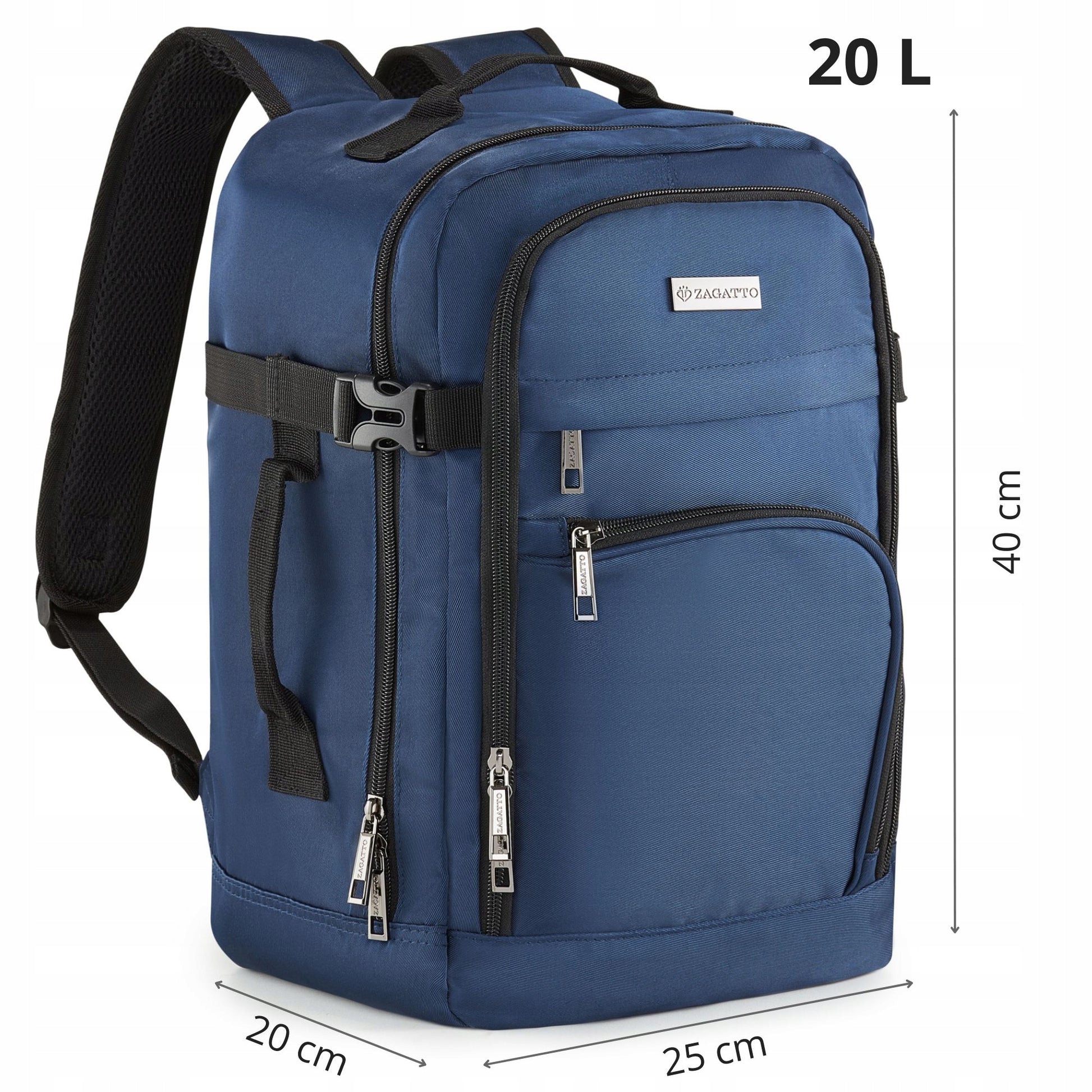 ZAGATTO tamsiai mėlyna kelioninė kuprinė lėktuvui 40x20x25 – rankinis bagažas Ryanair Wizzair