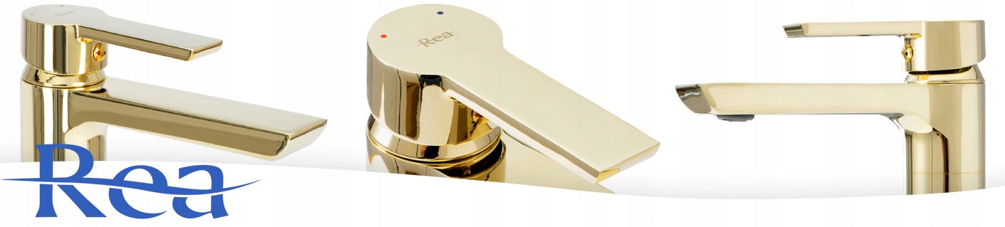 Žemas REA ARGUS GOLD auksinis blizgus modernus praustuvo maišytuvas