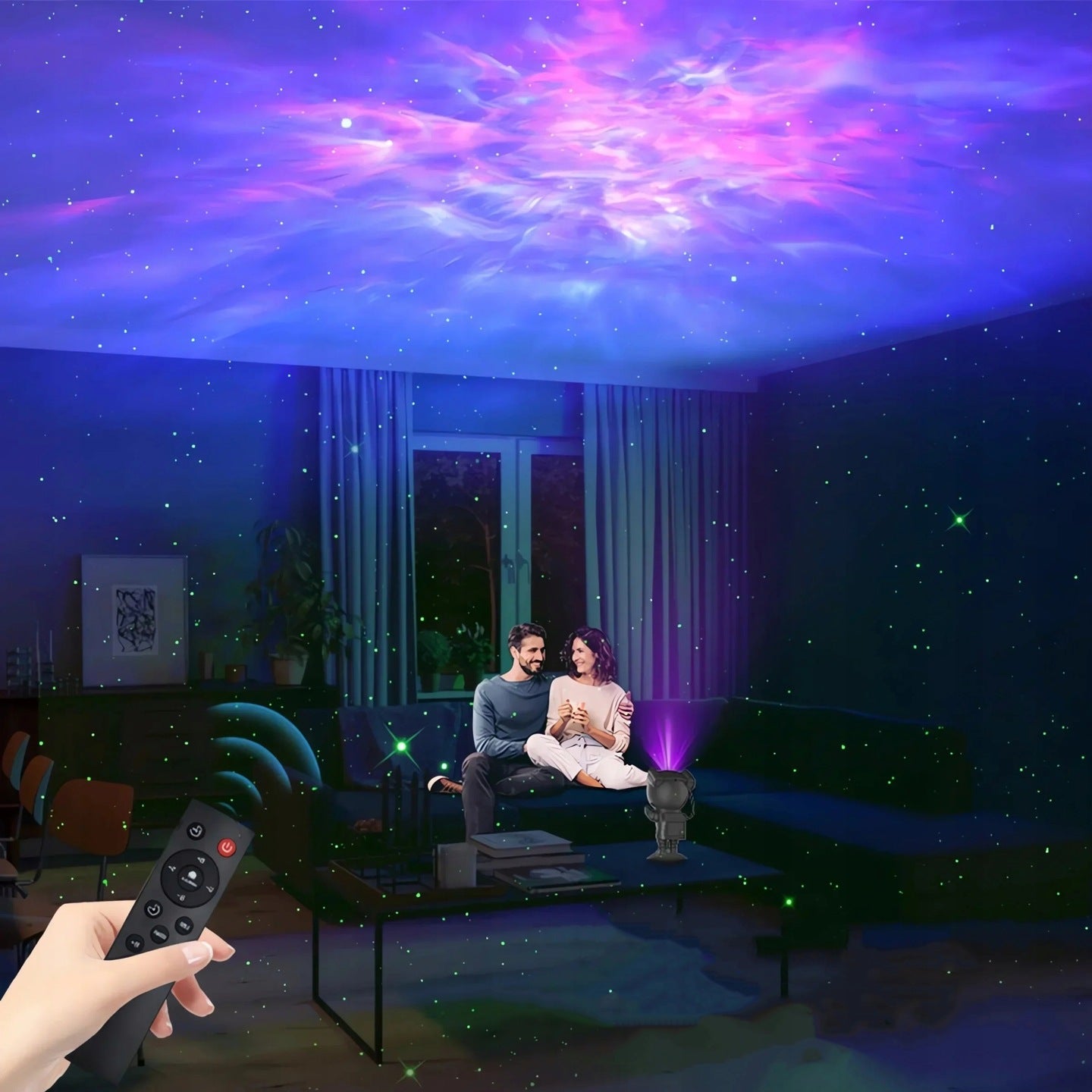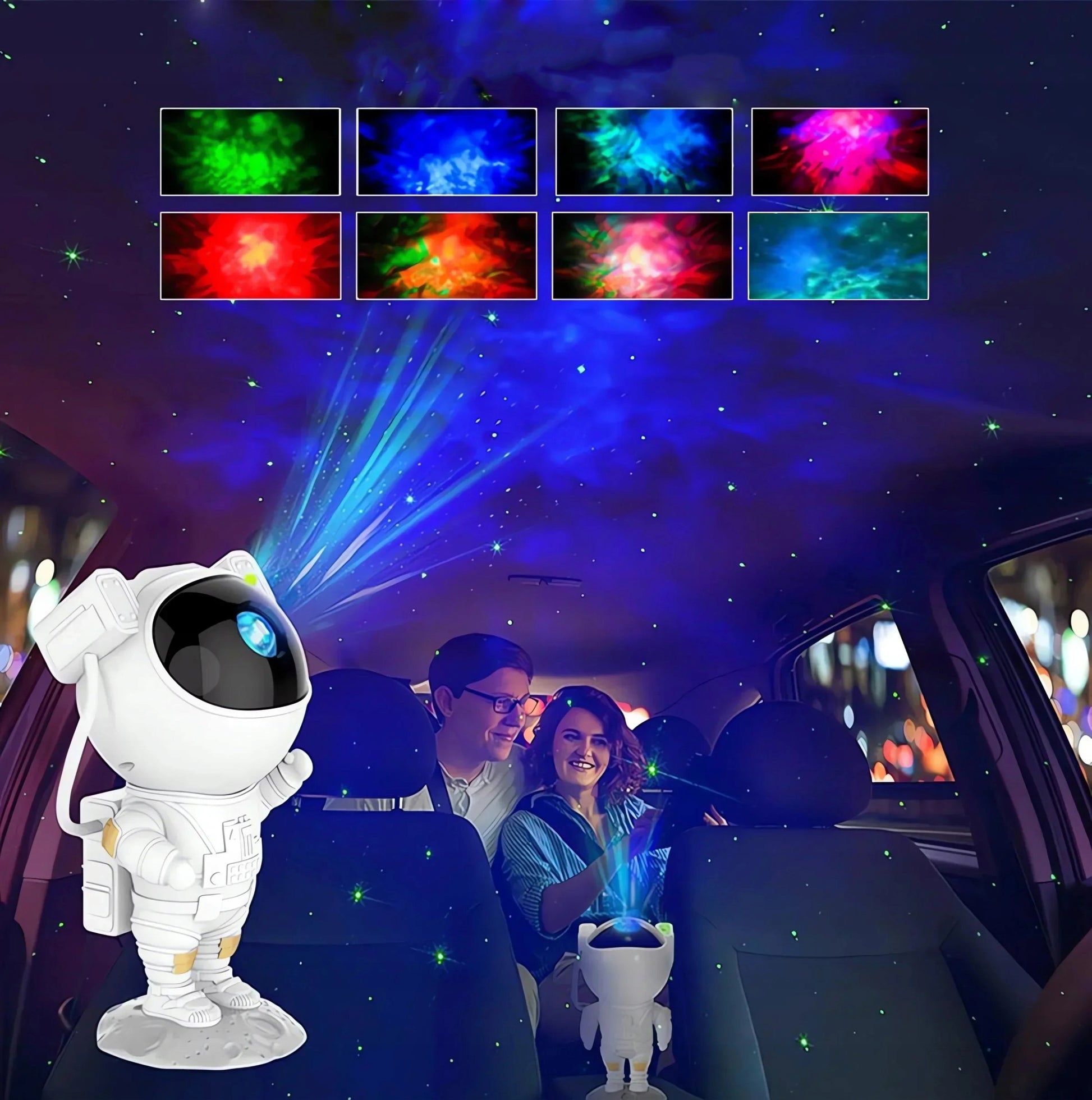 Astronauto formos žvaigždžių projektorius – puikus kompanionas užmiegant. Jis projektuoja įvairių spalvų ūkus ir mirksinčias žalias žvaigždes ant sienos ar lubų, sukuriant magišką galaktikos atmosferą. Projektoriaus galvutės pasukimo kampas reguliuojamas, leidžiant keisti šviesos kryptį. Jis turi 5 ryškumo ir greičio lygius ūkams ir 3 žvaigždžių ryškumo lygius. Pagamintas iš saugių, aplinkai draugiškų medžiagų, projektorius yra puikus vaikų kambario aksesuaras.