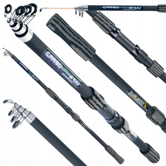- Dvi teleskopinės meškerės CARBOMAX HOKKAIDO, 2,1 m ilgio – tvirtos ir lengvos.