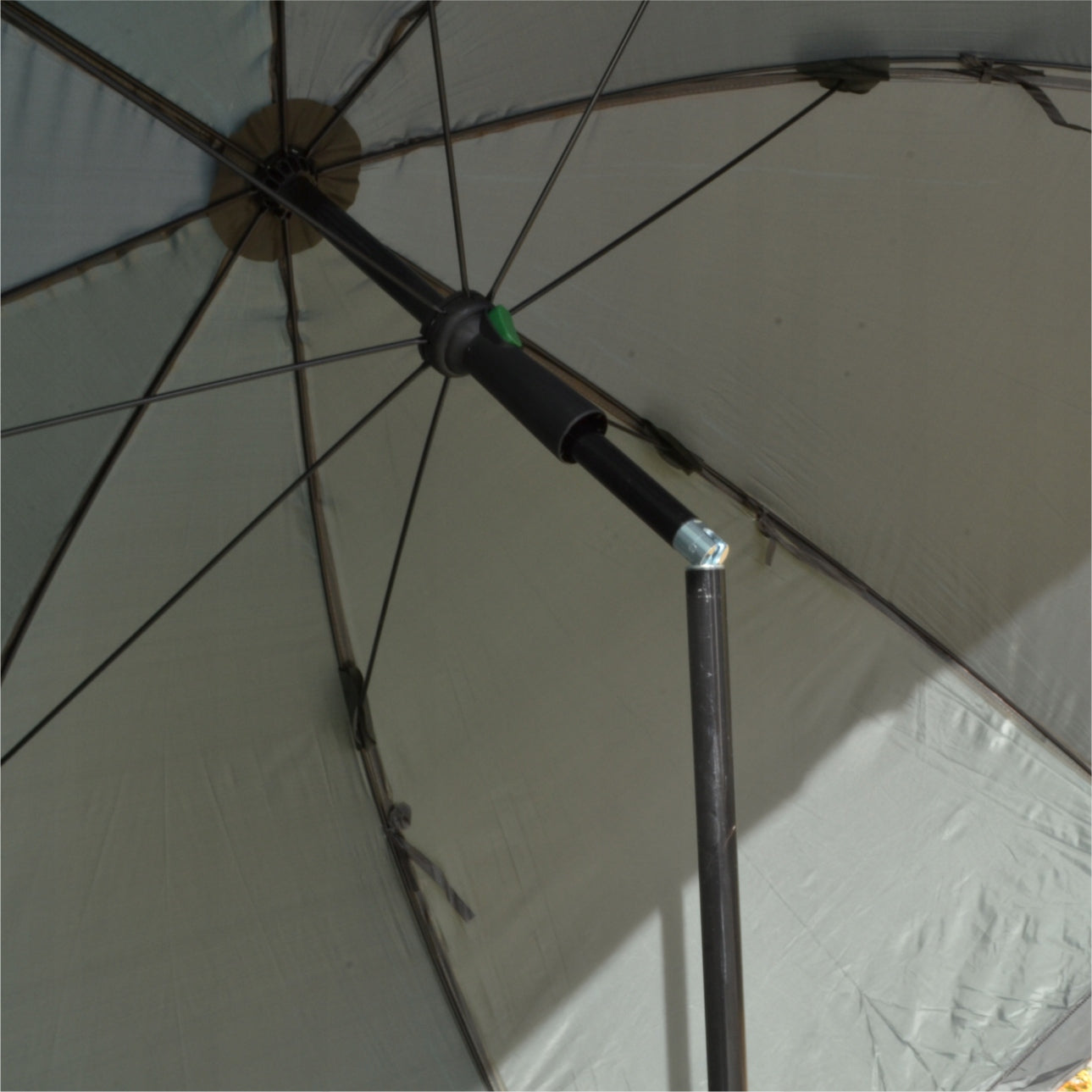 Vienas iš pagrindinių šio žvejybinio skėčio privalumų yra jo įspūdingi matmenys. Kai skėčio skersmuo siekia 250 cm, po juo atsiveria erdvi erdvė, kurioje patogiai telpa ne tik žvejys, bet ir visa reikalinga įranga bei daiktai. Maksimalus, iki 240 cm siekiantis aukštis leidžia laisvai judėti viduje, atsistoti ir atlikti įvairius veiksmus neišvengiant susilenkimo. Toks erdvumas ir aukštis ypač vertinami ilgesnėse žvejybos sesijose ar kai norima sukurti patogesnę poilsio zoną gamtoje.