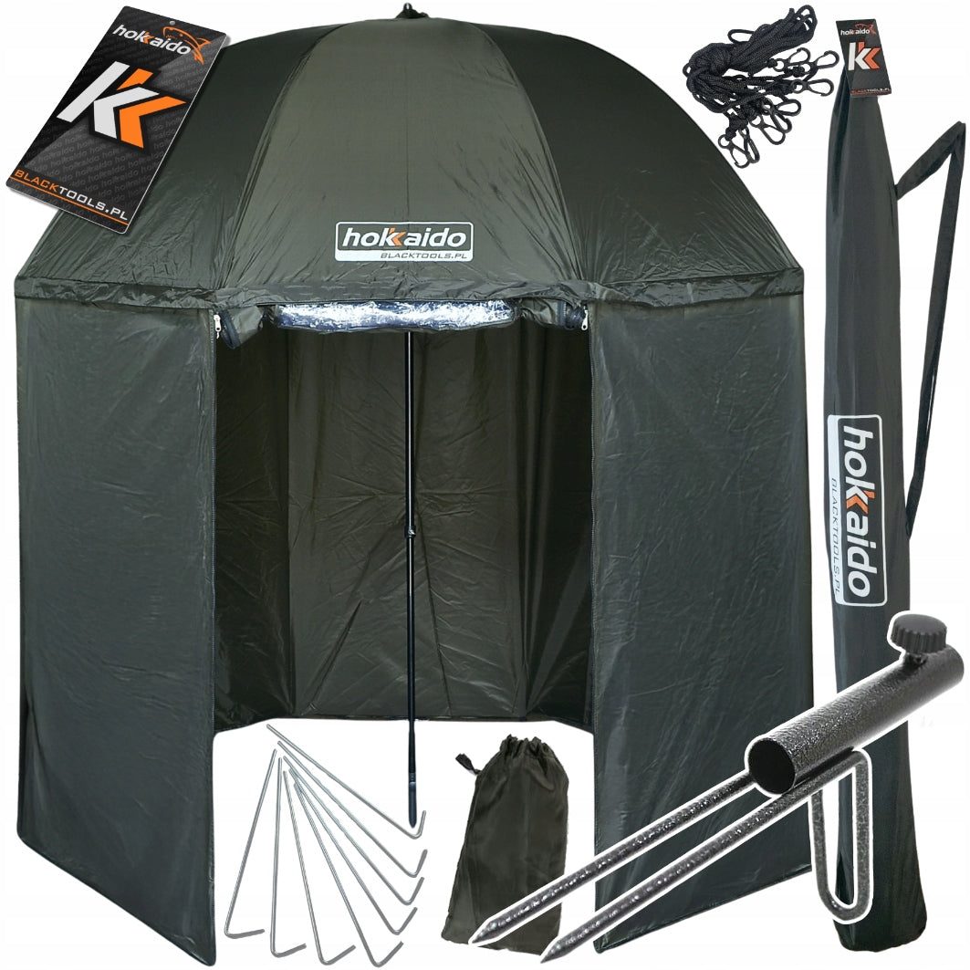 Šis rinkinys apgalvotas iki smulkmenų, kad suteiktų maksimalų patogumą tiek ruošiantis, tiek naudojant. Komplekte rasite viską, ko reikia greitam ir stabiliai pastatymui, bei patogiam transportavimui. Specialus kuoliukas (vadinamas „wbijak“ arba įspraudžiamas kuoliukas) užtikrina tvirtą skėčio fiksaciją net ir minkščiausiame grunte, suteikdamas stabilumo net per stipresnį vėją. Taip pat pridedamas patogus dėklas, leidžiantis lengvai sutalpinti ir transportuoti visą komplektą, todėl jis taps nepakeičiamu palydovu visose jūsų žvejybos kelionėse.